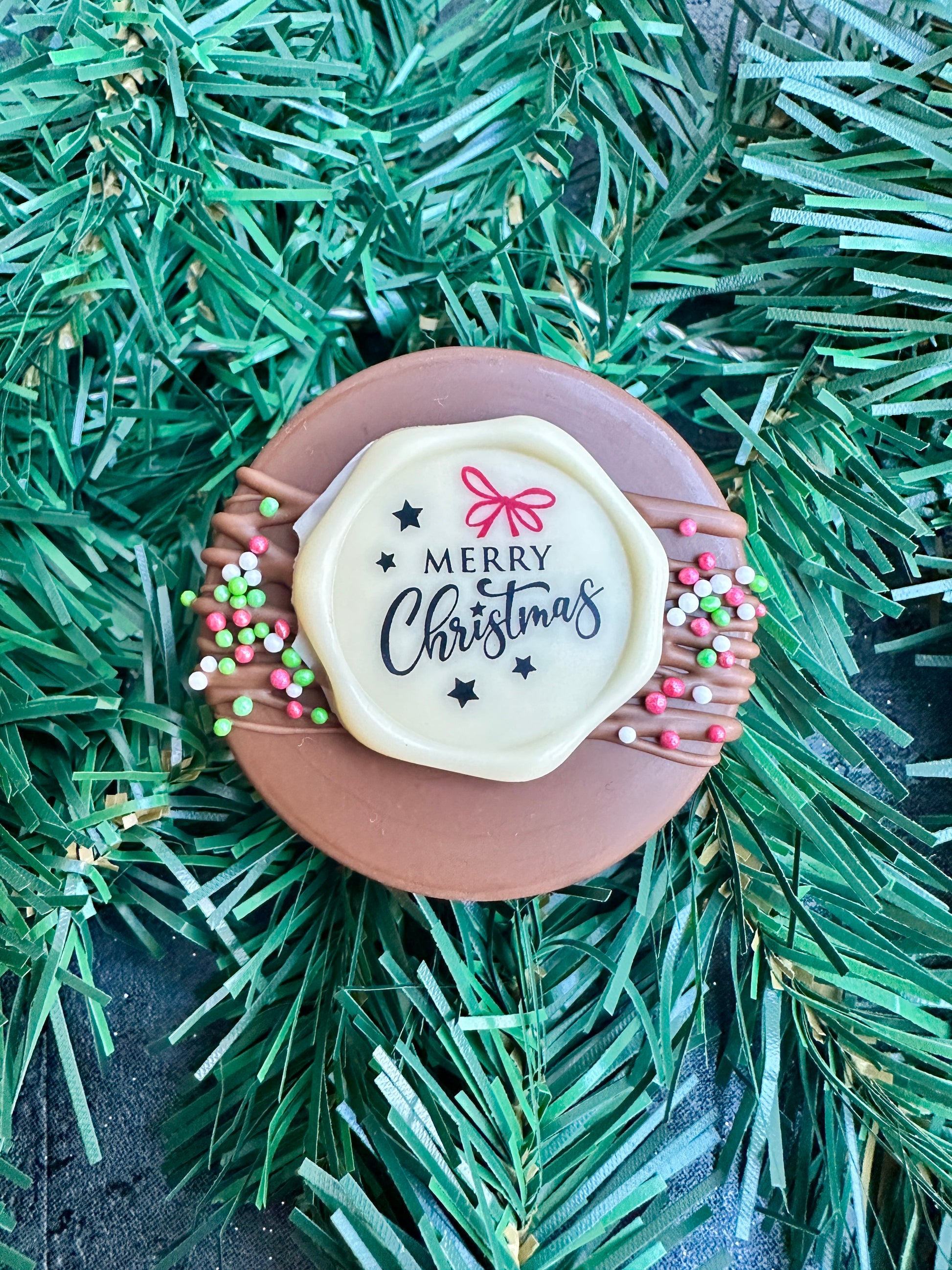 Each biscuit is topped with a merry Christmas topper and sprinkles!