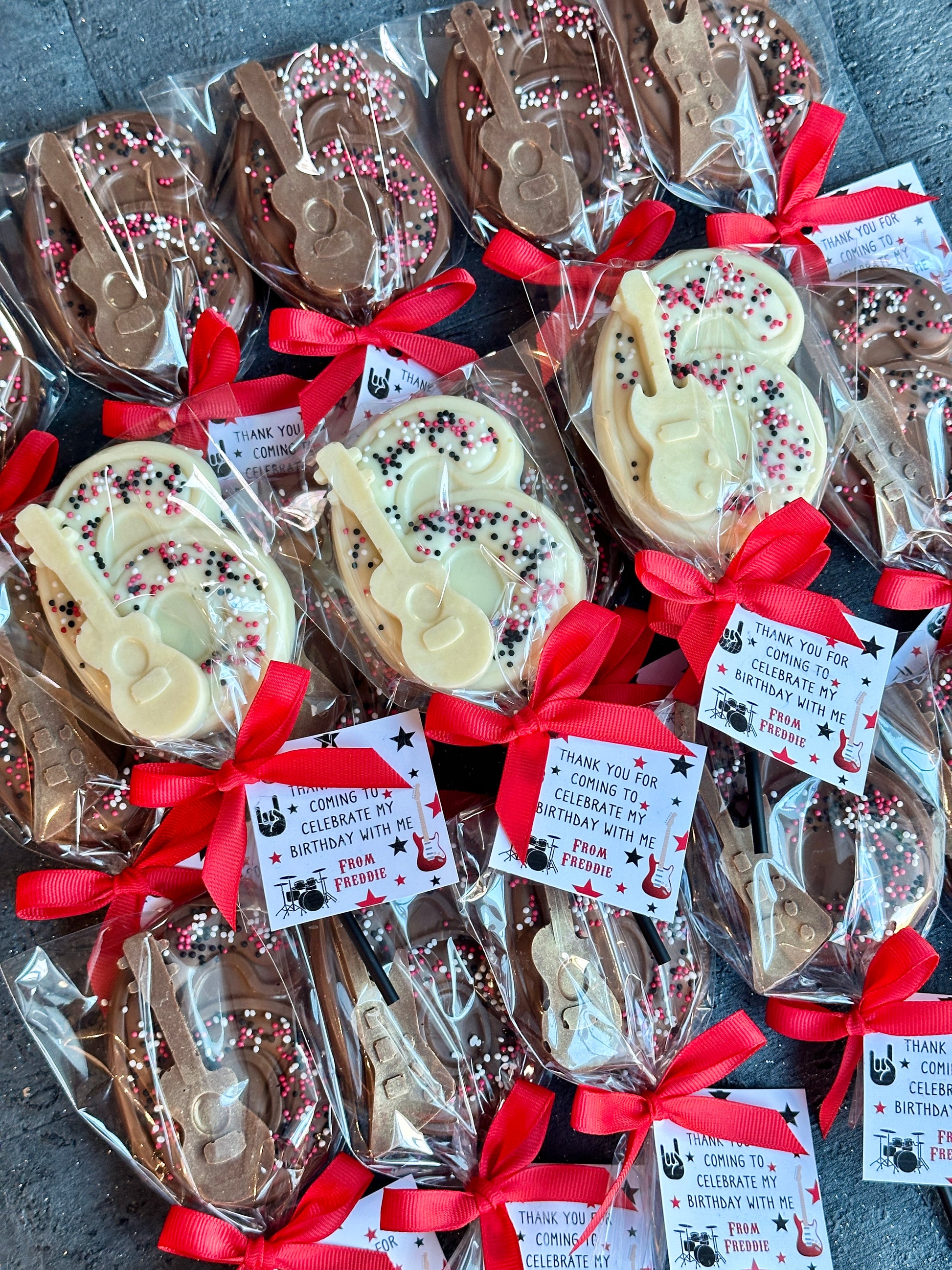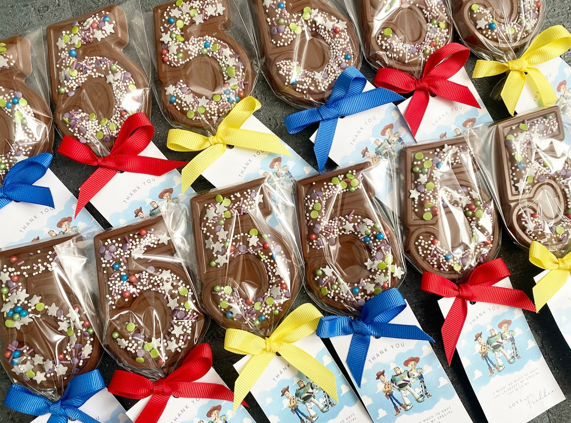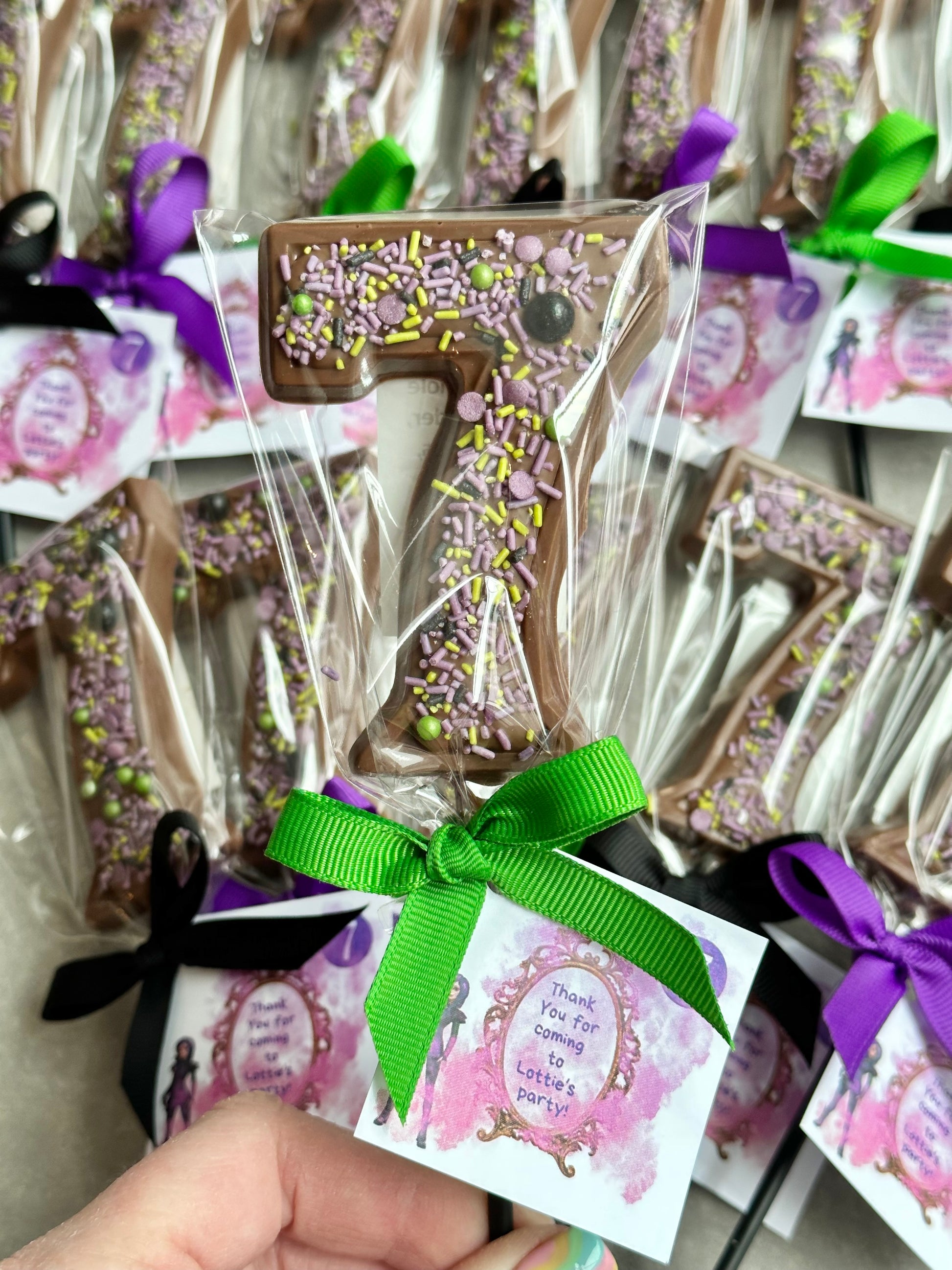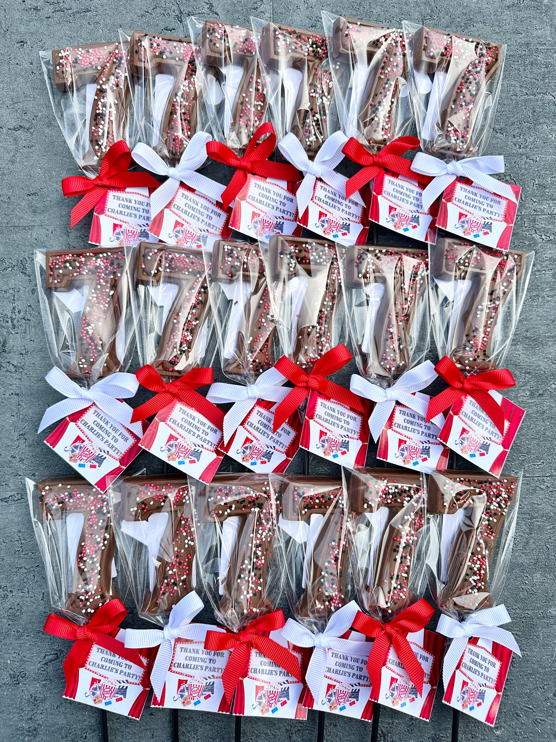 A Belgian chocolate number lollipop. Can be left plain or with sprinkles of your choice.