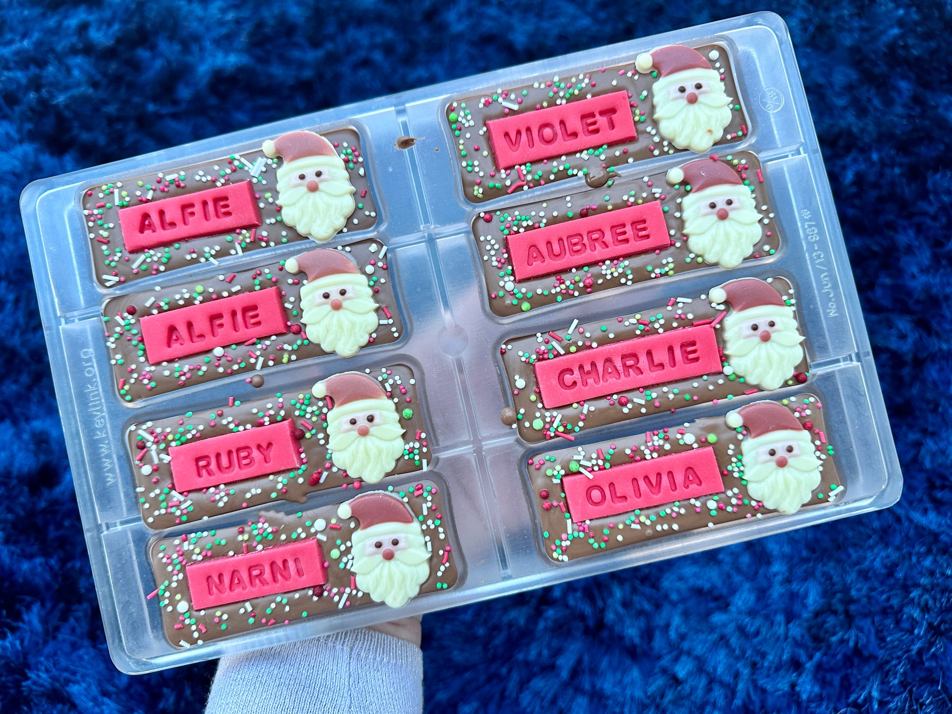 A lovely little festive mini bar that can be personalised with any name and a chocolate Santa plaque
