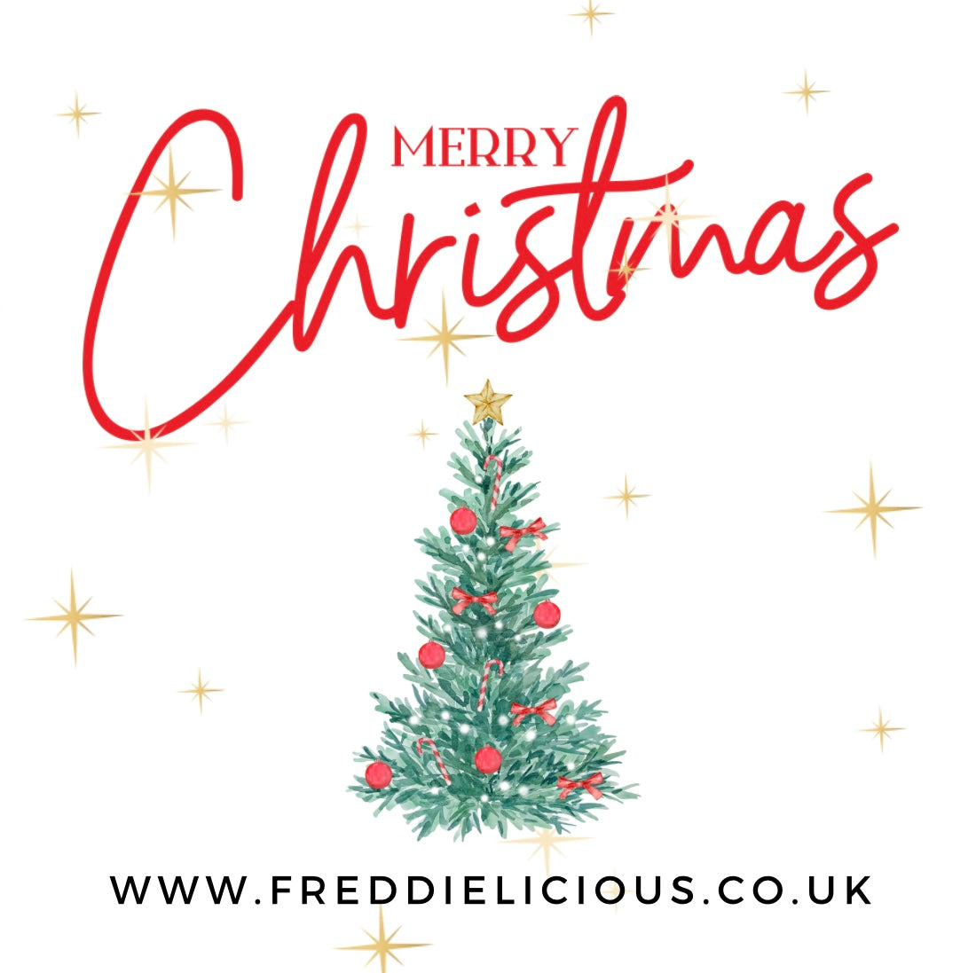 Presented in a white box, clear lid, wrapped in ribbon and Christmas tag